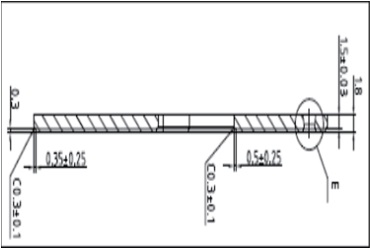 3.1.1 L2-3層采用用1OZ底銅芯板,如圖5,完成L2層線路后,選1/3 OZ銅箔進行壓合,壓合后先將L1層的1/3 OZ減銅至6-8um,然后用干膜保護L1層,再將L3層由1OZ減銅至6-8um。