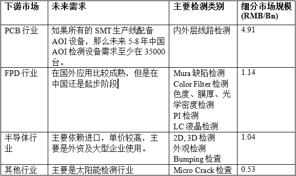2015年中主要AOI市場需求領(lǐng)域: