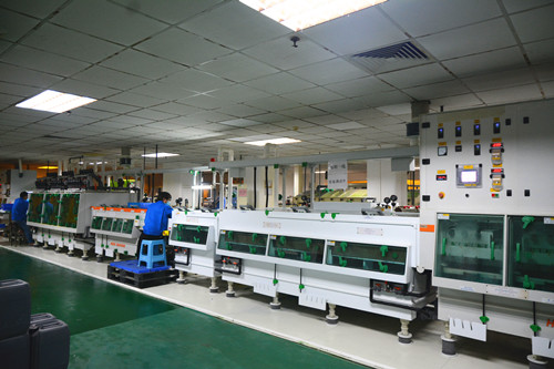 參訪團后走訪了珠海鎮東有限公司。珠海鎮東成立于1999年1月1日,公司的核心產品是印制電路板制造用陶瓷刷輥、不織布刷輥、尼龍針刷輥、火山灰刷輥,另外還有光學級曝光玻璃、全系列各類刷板機系統(21刷/17刷/13刷/9刷/8刷/4刷/2刷/1刷<以及薄板、厚板>)、砂帶研磨機、銅粉過濾機、真空絲印機和匹配型塞孔油墨/樹脂等線路板制造用相關設備及物料, 并為廣大客戶提供真空絲印塞孔、研磨的代工服務。在珠海鎮東的生產車間內,各生產設備正在正常運行,工人們有條不紊地調整著設備參數。據總經理趙其平介紹,2016年開工大吉,訂單量穩中有升,今后將繼續提升企業的科研實力,以優質的產品服務客戶、為客戶創造價值。