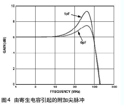 在高速電路中,很小的值就會影響電路的性能。有時候幾十個皮法(pF)的電容就足夠了。相關實例:如果在反相輸入端僅有1pF的附加寄生電容,它在頻率域可以引起差不多2dB的尖脈沖(見圖4)。如果寄生電容足夠大的話,它會引起電路的不穩定和振蕩。杭州PCB|杭州smt