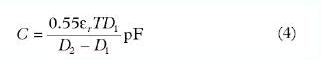 公式(4)示出了如何計算通孔(參見圖8)引起的寄生電容值。