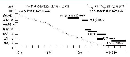 隨著電子整機產品的高速化發展,這就要求所使用PCB的特性阻抗控制要求達到高精度化。以計算機高速化進展為例,就可以說明這一需求的發展趨勢。