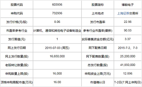 博敏電子發(fā)行價(jià)8.06元 今日網(wǎng)上申購(gòu)服務(wù)
