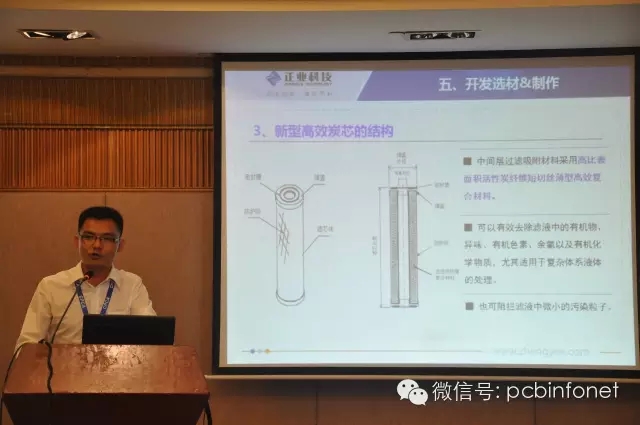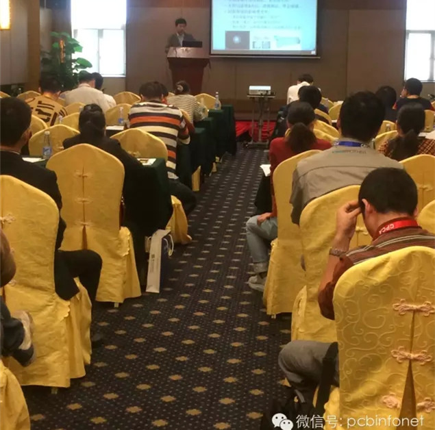7號會場共有5場演講,會場由陳良主持,演講者和演講主題分別為重慶方正密高電子周明鏑的《高密度無引線金手指的加工推廣》、廣東正業科技李勇的《活性炭濾芯現狀及新型高效活性炭濾芯的研發》、廣州興森快捷電路況東來的《ENEPIG金手指工藝的可行性研究 》、 汕頭超聲印制板孟凡義的《不同Pad對沉鎳金厚度影響的研究 》、深圳金百澤電子唐殿軍的《金手指與化學鎳金符合表面處理加工工究》/樊廷慧的《HEDP對化學鍍鎳的影響》。請看7號會場演講者們演講的精彩瞬間。